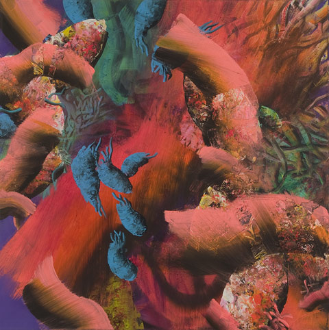 Die Arbeiten von Ulrike Donié stehen zwischen Abstraktion und Gegenständlichkeit. Man meint schon einmal Gesehenes wiederzuerkennen. Bei genauerer Betrachtung könnte sich dies jedoch als Illusion erweisen und Fragen stellen sich ein. Ist das ein Himmel oder der Meeresgrund? Sind dies wirklich fischähnliche Wesen oder tausendfach vergrößerte Mikroorganismen? Pflanzenkeimlinge oder amöbe Kleinstlebewesen? Wird hier überhaupt Wirklichkeit abgebildet oder handelt es sich um mit Emotion aufgeladene Assoziationen, die keinen Bezug zu einer jemals erlebten oder erlebbaren Welt haben? Verharren und Dynamik stehen sich dabei gegenüber. Zeit steht still oder verrinnt im Nu. Es wird dabei eine malerische Spannung, auch in der Farbgebung, bis zur Schmerzgrenze erzeugt. Man kann sich in einem Farbrausch verlieren, in einer Welt versinken, die kein Ende findet. Die Farben sind aber auch fast unerträglich grell und sollen Unbehagen auslösen. Werden und Vergehen werden in einem Prozess dargestellt. Die Natur ist neutral, bleibt absichtslos. Bewertungen oder gar ästhetische Kategorien, der Begriff der Schönheit kommen erst mit dem Menschen auf diese Welt. Zugleich führt der permanent von offensichtlichen Mängeln geprägte Überblick des Menschen zu einer Unmöglichkeit, die Welt und das Danach zu durchdringen. Die Arbeiten von Ulrike Donié machen diese Undurchdringlichkeit zum Gegenstand der Malerei. Die illusionierte Räumlichkeit zeigt eine Perspektive in eine unendliche Tiefe oder Höhe. Aber wohin?